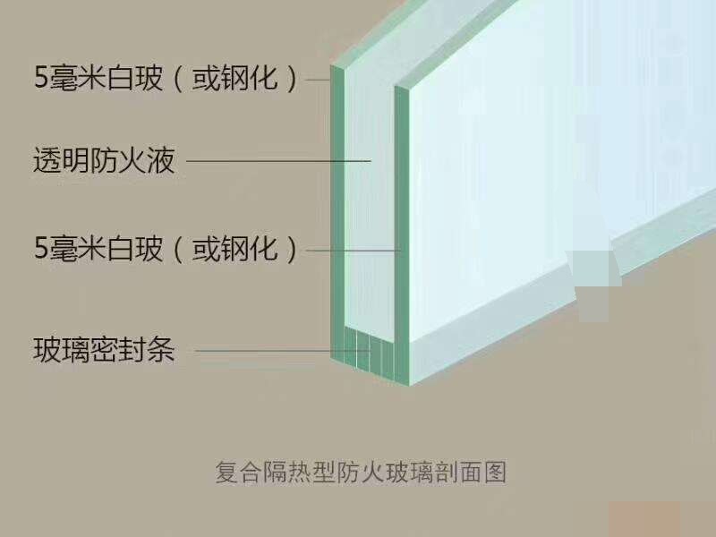 当火灾发生时,灌注固化在隔热型防火玻璃中间的特殊透明化学物质大量地吸收火焰中的热量而发泡膨胀,同时变成不透明的白色,高效地阻止燃烧产生的热量从迎火面向背火面的传导,同时阻止玻璃迎火面火焰的热辐射向背火面的传递。在这过程中,玻璃整体保持完整,形成了一个可以阻隔火焰、烟雾和燃烧产生的高温毒气扩散与蔓延的有效屏障。