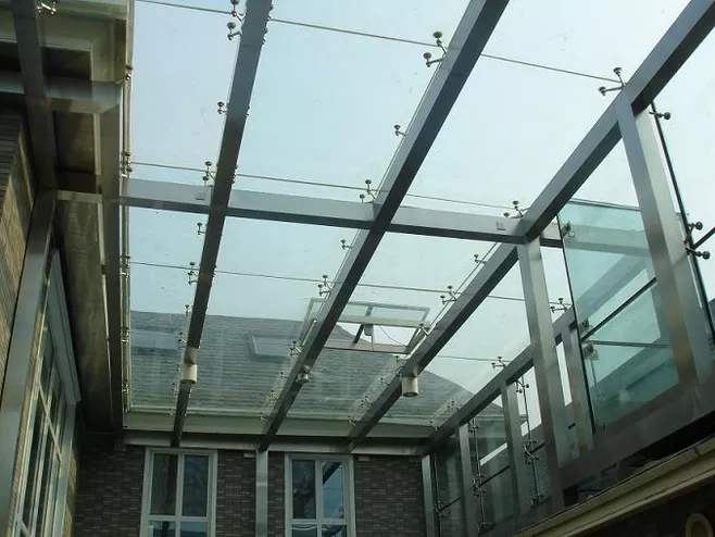 夹层玻璃 是由两片或多片玻璃,之间夹了一层或多层有机聚合物中间膜,经过特殊的高温预压(或抽真空)及高温高压工艺处理后,使玻璃和中间膜永久粘合为一体的复合玻璃产品。常用的夹层玻璃中间膜有:PVB、SGP、EVA、PU等。此外,还有一些比较特殊的如彩色中间膜夹层玻璃、SGX类印刷中间膜夹层玻璃、XIR类LOW-E中间膜夹层玻璃等。内嵌装饰件(金属网、金属板等)夹层玻璃、内嵌PET材料夹层玻璃等装饰及功能性夹层玻璃。 夹层玻璃作为一种安全玻璃在受到撞击破碎后,由于其两片普通玻璃中间夹的PVB膜的粘接作用,不会像普通玻璃破碎后产生锋利的碎片伤人。同时,它的PVB中间膜所具备的隔音、控制阳光的性能又使之成为具备节能、环保功能的新型建材:使用夹层玻璃不仅可以隔绝可穿透普通玻璃的1000赫兹—2000赫兹的吻合噪声,而且它可以阻挡99%以上紫外线和吸收红外光谱中的热量。作为符合新型建材性能的夹层玻璃势必将在安全玻璃的使用中发挥巨大的作用。