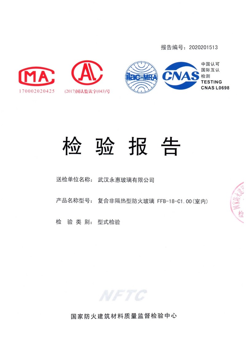 复合非隔热型防火玻璃/FFB-18-C1.00(室内)