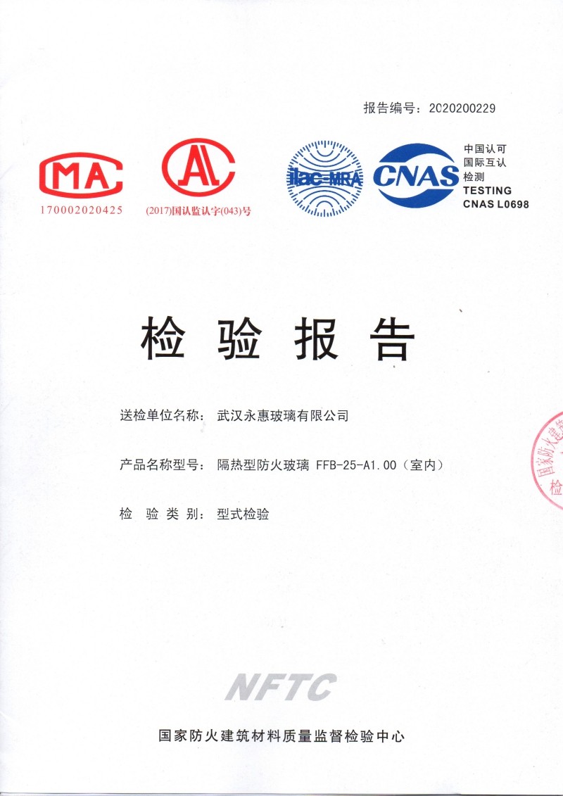 隔热型防火玻璃/FFB-25-A1.00(室内)