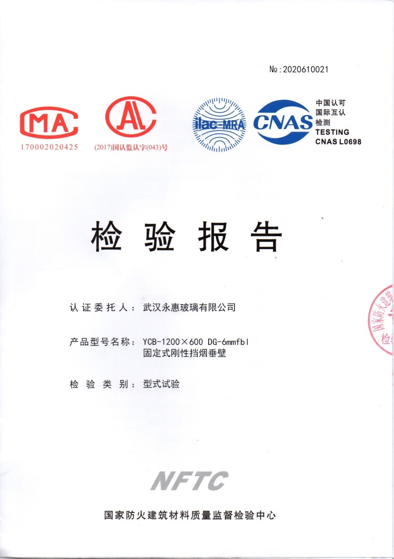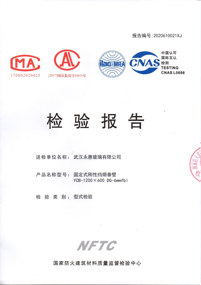 固定式刚性挡烟垂壁 YCB-1000×600 DG-6mmf