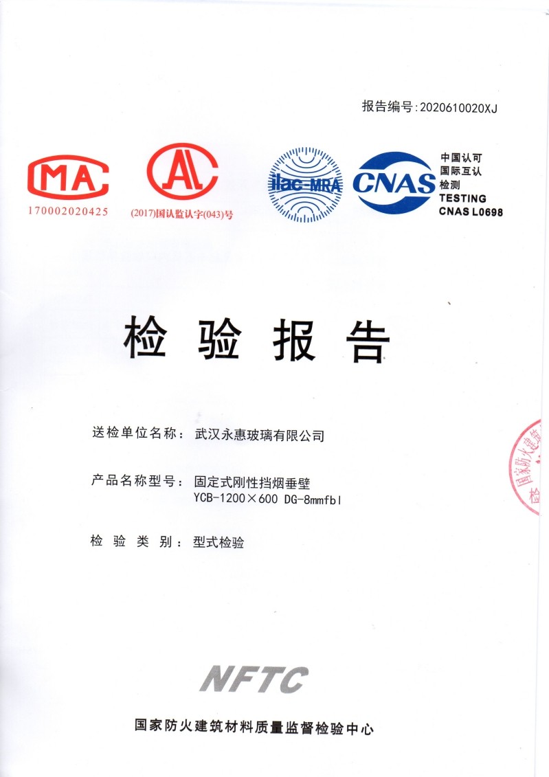 固定式刚性挡烟垂壁 YCB-1000×600 DG-8mmf