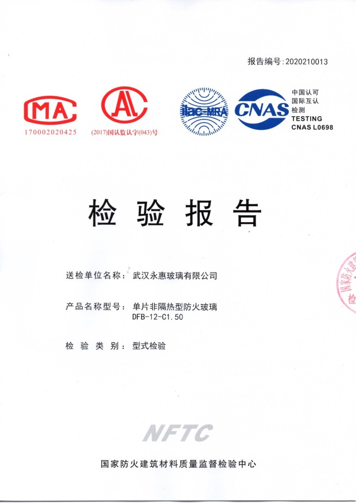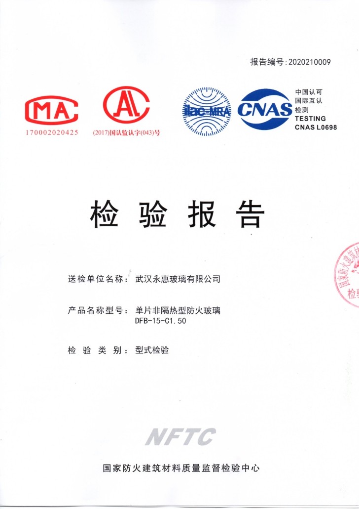 单片非隔热型防火玻璃/DFB-15-C1.50